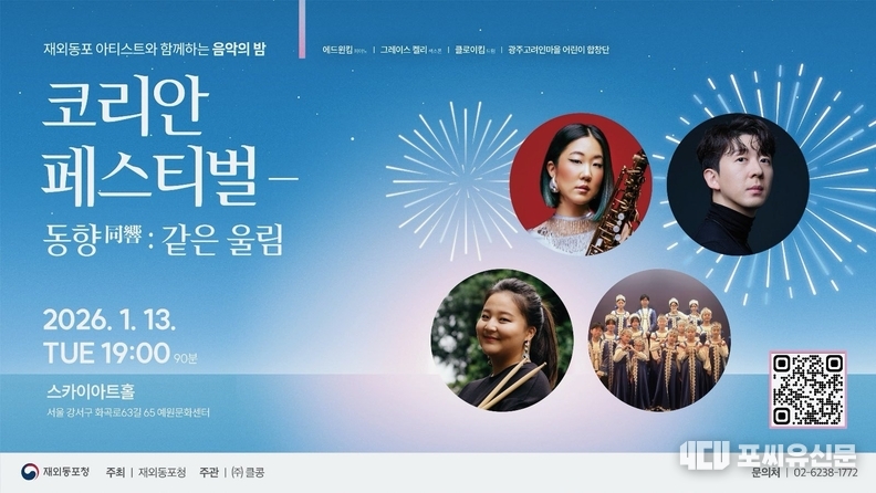 재외동포청은 2026년 1월 13일(화) 오후 7시, 스카이아트홀(서울 강서구)에서 ‘코리안 페스티벌, 동향(同響)-같은 울림’을 개최한다.