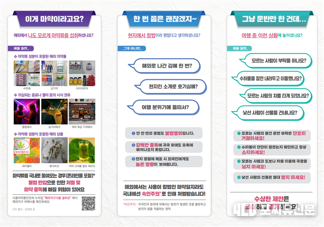 최근 대마초 흡입이 합법화된 국가나 마약 유통이 활발한 국가로 여행 시, 호기심이나 현지 문화 차이 때문에 마약에 노출될 위험이 커집니다.