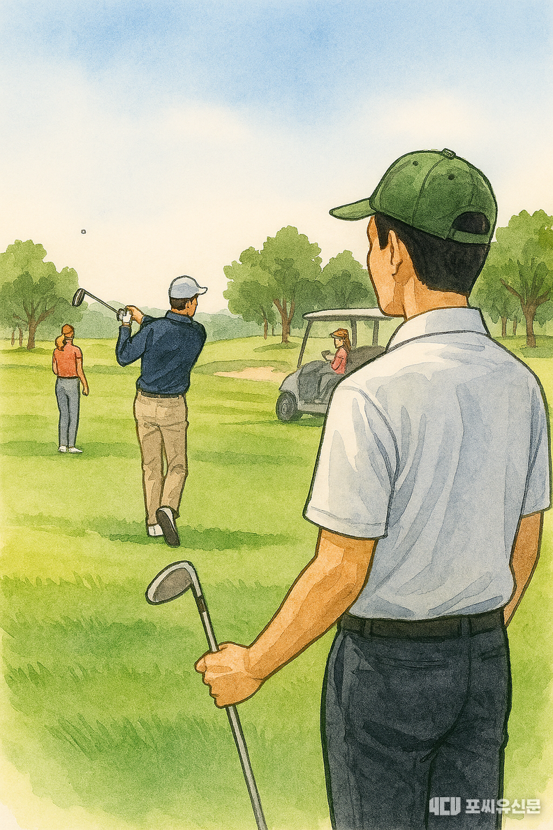"(피해예상자에게) 뒤에서 샷을 할 수 있습니다. 안전하게 카트 주변으로 이동해 주십시오." |