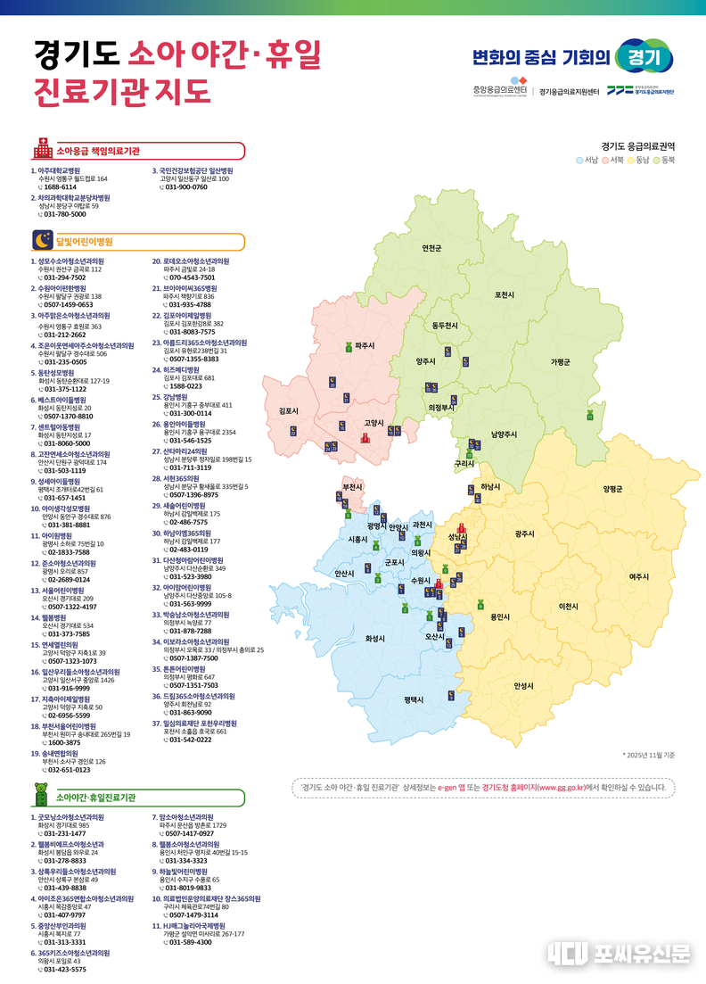 경기도가 아이 키우는 부모들에게 가장 든든한 의료 안전망을 제공하고 있다. 2025년 기준, 전국 130개 달빛어린이병원 중 37개소(28%)를 운영하며 전국 최다 규모를 기록한 경기도는 소아 야간·휴일 진료의 안정적 기반을 선도적으로 마련했다.