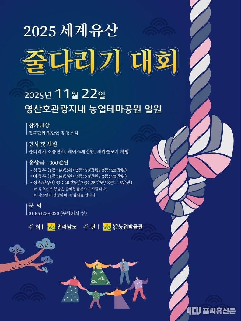 세계유산 줄다리기 경연대회는 전남도농업박물관이 주최하는 주요 문화 행사로, 농업과 공동체 정신의 가치를 널리 알리는 중요한 기회이자 뜻깊은 축제의 장이 될 전망이다.