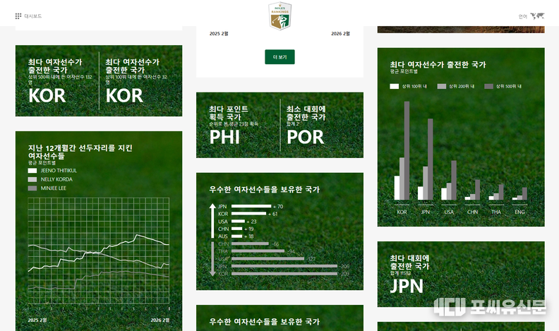 [포씨유신문 정우정 기자] 지난 주 LPGA 경기가 없었기 때문에 상위권 순위 변동은 없었다.