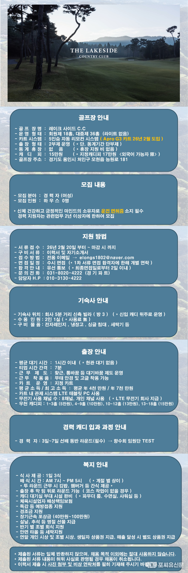 [캐디구인] <용인> 레이크 사이드 CC