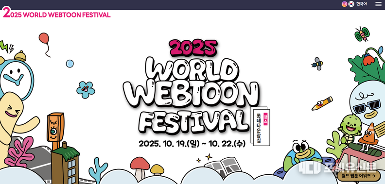 문화체육관광부(이하 문체부)는 한국콘텐츠진흥원과 함께 10월 19일(일)부터 22일(수)까지 롯데타운 잠실 일대에서 ‘2025 월드 웹툰 페스티벌’을 개최하고 축제 마지막 날인 22일(수)에는 ‘2025 월드 웹툰 어워즈 시상식’을 진행한다. 올해로 2회째를 맞이한 ‘월드 웹툰 페스티벌·어워즈’는 우리나라의 웹툰 종주국으로서의 위상을 강화하고 국내외 창작자와 플랫폼·제작사, 웹툰 팬들이 소통할 수 있도록 마련한 행사다.