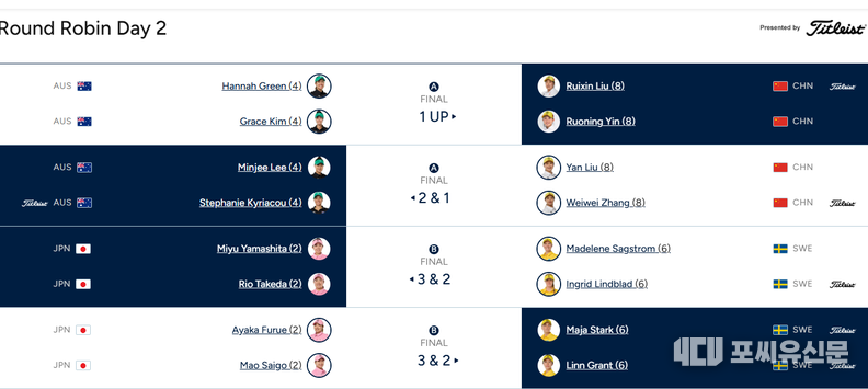 - 고진영·유해란 조 → 월드팀의 웨이링 슈·브룩 핸더슨 조와 무승부