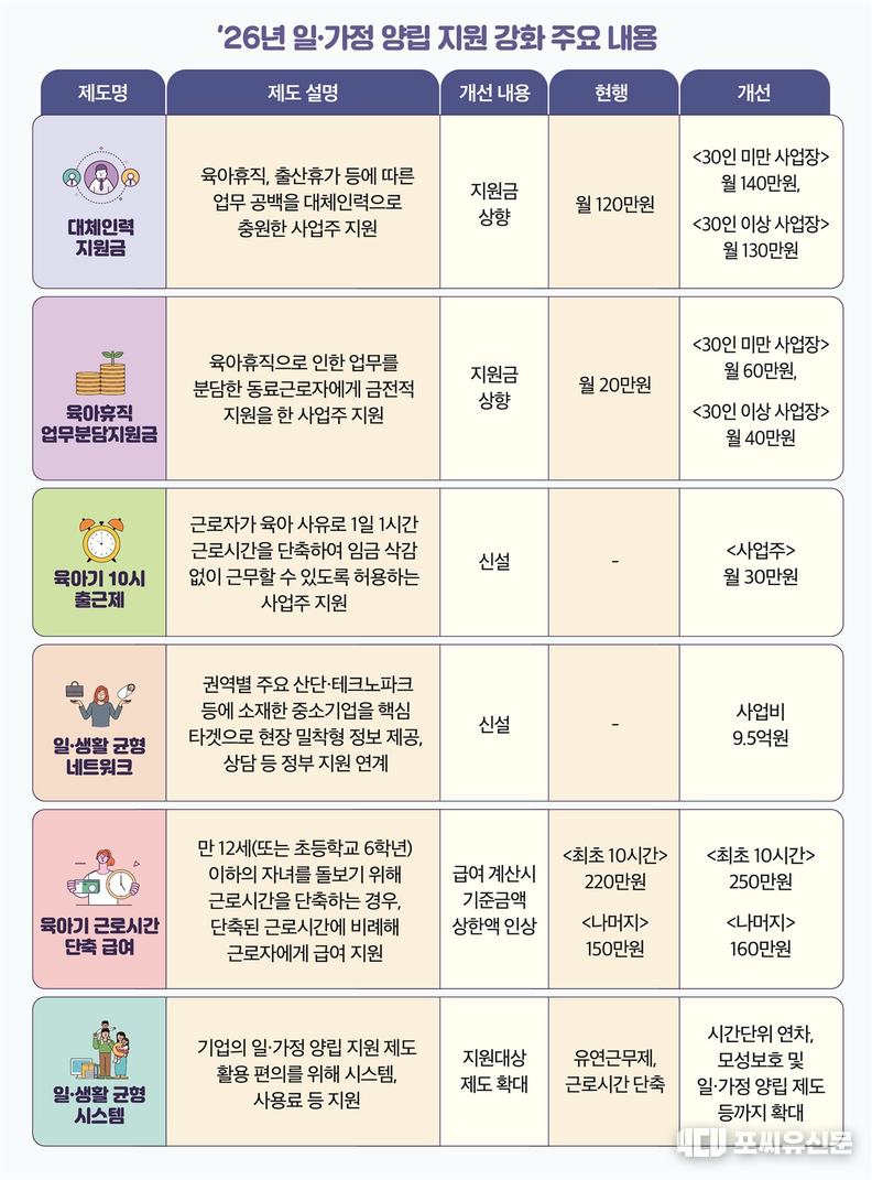 고용노동부는 일하는 부모의 자녀돌봄 지원을 강화하고, 중소기업의 일·가정 양립 제도 사용을 촉진하기 위한 지원방안을 내년 정부 예산안에 담았다.