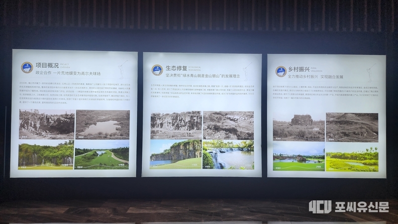 삼공리 CC는 클럽하우스 앞에 "海口公里矿坑高尔夫球会"라는 명확한 한자 명칭을 내세우고 있습니다 . 이 이름처럼, 삼공리 CC는 광산 지형을 활용하여 개발된 골프장이라는 특징을 가지고 있습니다. 이러한 지형적 특성 덕분에 코스 레이아웃이 독특하며, 3일간의 라운드에서도 매번 새로운 전략을 요구하여 큰 즐거움을 주었습니다.
