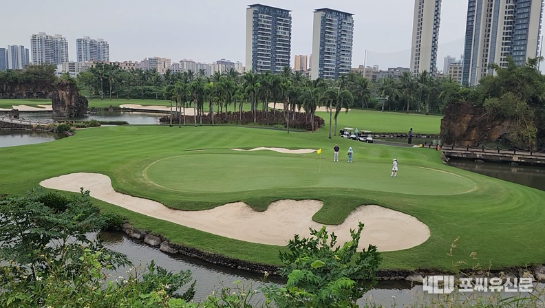 특히, 라운드의 마지막을 장식하는 홀 근처에서는 미래 도시의 스카이라인을 연상시키는 고층 건물들이 배경에 병풍처럼 펼쳐져 있습니다 . 이는 코스의 자연적인 아름다움과 하이난 해구라는 도시의 발전상이 묘하게 조화되는 이색적인 풍경을 제공하며 라운드를 마무리하는 특별한 경험을 선사했습니다.