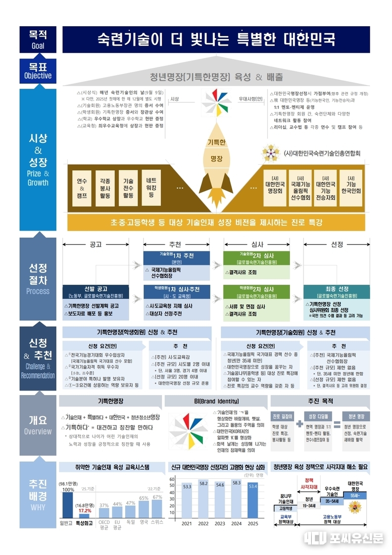 고용노동부가 2025년 11월 11일, 청소년·청년 기술인재를 조기에 발굴하고 대한민국명장으로 성장할 수 있도록 지원하는 새로운 제도 ‘기특한명장’을 도입한다고 밝혔다.