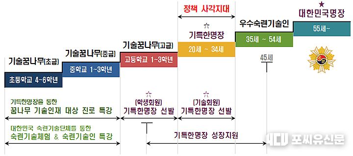 - 기존 대한민국명장 제도는 15년 이상 경력이 필요해 평균 50대 중후반에야 선발 가능