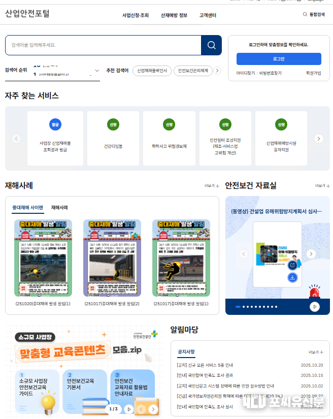 안전보건공단(KOSHA, 이사장 김현중, 이하 ‘공단’)은 11월 17일 ‘산업안전포털’(portal.kosha.or.kr)을 정식 오픈했다.