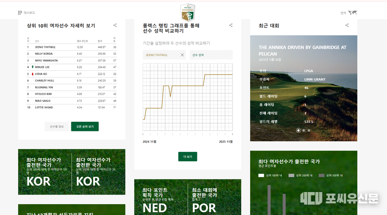김세영 11위, 유해란 13위, 최혜진 17위, 고진영 22위, 김아림 26위, 황유민 30위를 기록했다.