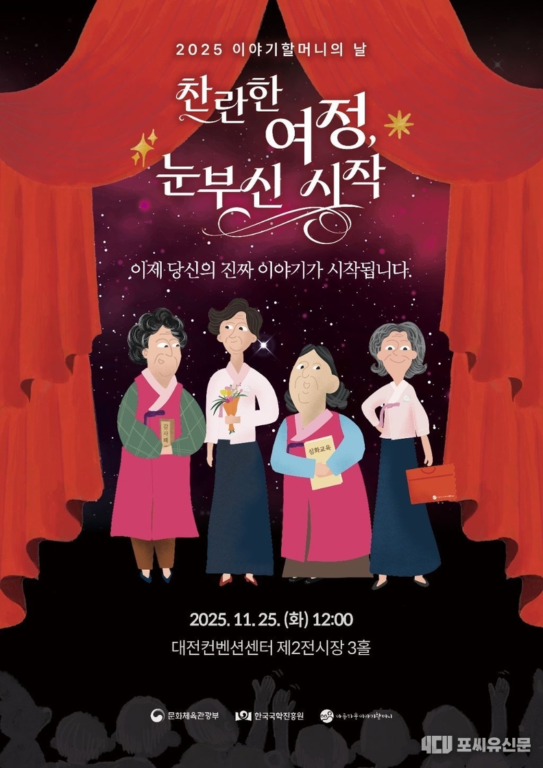 문화체육관광부(이하 문체부)는 한국국학진흥원과 함께 11월 25일(화), 낮 12시부터 대전컨벤션센터에서 ‘2025년 이야기할머니의 날’ 행사를 열어, 5년 이상*의 활동을 마친 이야기할머니 405명의 졸업식과 올해 선발되어 1년간 교육을 받고 내년부터 활동을 시작하는 17기 이야기할머니 541명의 교육 수료식을 진행한다.