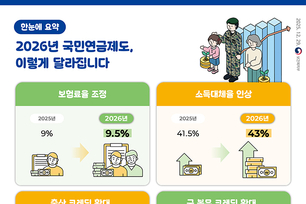 2026년부터 국민연금 보험료율이 9%에서 9.5%로 인상되고 국가 지급보장이 법에 명시되는 등 국민연금 제도 전반의 변화가 시행된다. 직장가입자는 사용자와 근로자가 절반씩 부담하지만, 캐디처럼 지역가입자로 분류되는 경우 전액 본인이 납부해야 해 부담이 더 크다. 정부는 저소득 지역가입자에 대한 지원을 확대하겠다고 밝혔지만, 현장의 우려는 여전하다.