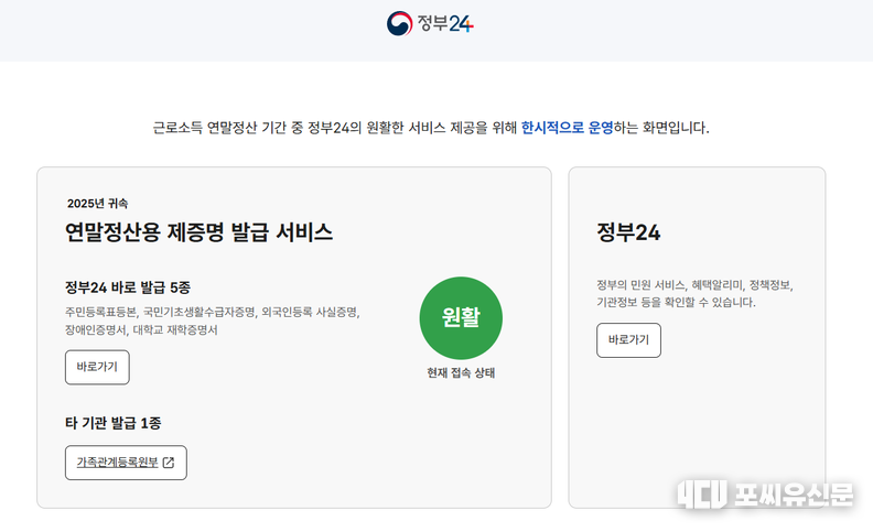 ‘정부24’에서 2025년 귀속 연말정산에 필요한 주민등록등본 등 5종의 증명서를 평소보다 더 간편하게 발급받을 수 있다.