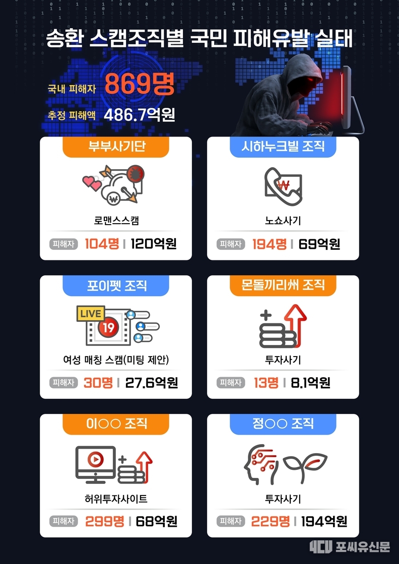 캄보디아 현지에 파견된 코리아전담반, 국정원, 현지 캄보디아 경찰 등은 장기간에 걸친 추적 끝에 스캠 단지 7곳을 확인하고, 작년 12월 시하누크빌 스캠조직 51명, 포이팻 스캠조직 15명, 몬돌끼리 스캠조직 26명 등을 검거하는 성과를 거뒀다.