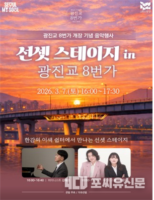 한편 서울시는 광진교 8번가 개장을 기념해 오는 7일(토) 음악공연 ‘선셋 스테이지 in 광진교 8번가’를 개최한다. 16시부터 17시 30분까지 진행되는 이번 공연은 피아니스트 김태은과 재즈밴드 튠어라운드가 무대에 올라 클래식, 팝재즈 등 다양한 감성 연주를 통해 색다른 음악적 경험을 제공한다.