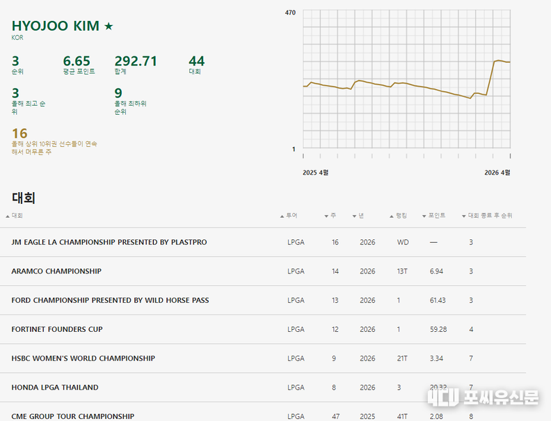 김효주(3위)의 안정적인 유지 외에도 김세영(9위)의 상승세가 돋보이는데, 그녀의 최근 경기에서의 아이언 샷 정확도와 퍼팅 감각이 포인트 증가의 핵심 요인으로 분석된다.