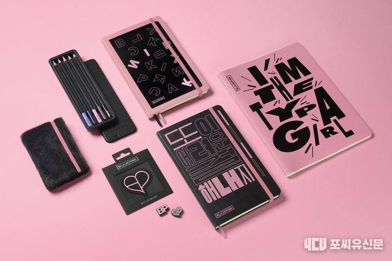 제품은 블랙핑크의 시그니처 컬러를 반영해 총 6종으로 구성됐다. 하트 로고 패치와 레터&심볼, 블랙 인조 모피 커버에 핑크 엘라스틱 밴드를 더한 소프트 노트와 까이에 저널 등 다양한 라인업으로 구성됐다.