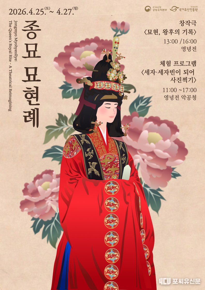 [포씨유신문=박윤희 기자] 국가유산청 궁능유적본부는 국가유산청 산하 국가유산진흥원과 함께 4월 25일부터 27일까지 3일간 서울 종로구 종묘에서 2026년 「종묘 묘현례」 행사를 연다.