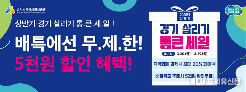[포씨유신문=박윤희 기자] 경기도주식회사는 오는 29일까지 ‘2026 상반기 경기살리기 통큰 세일’을 통해 소비자 할인을 시행한다고 22일 밝혔다.