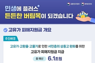 지난 10일 국회에서 확정된 이번 고유가 피해지원금 사업은 중동전쟁으로 인한 고유가 · 고물가 등 국민 부담 경감을 목적으로 하며, 국민의 70%를 대상으로 소득계층별 · 지역별로 1인당 10만원에서 최대 60만원까지 차등 지원한다.