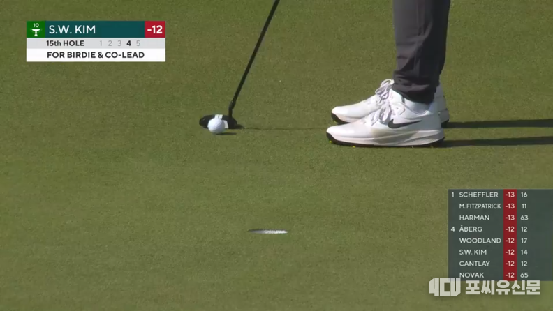 셰플러의 추격: 세계 랭킹 1위 스코티 셰플러(미국)의 기세가 무섭습니다. 셰플러는 보기 1개와 버디 8개를 쓸어담으며 7언더파 64타를 기록, 단숨에 12계단을 뛰어오르며 선두에 3타 뒤진 단독 2위(14언더파)에 안착했습니다.
