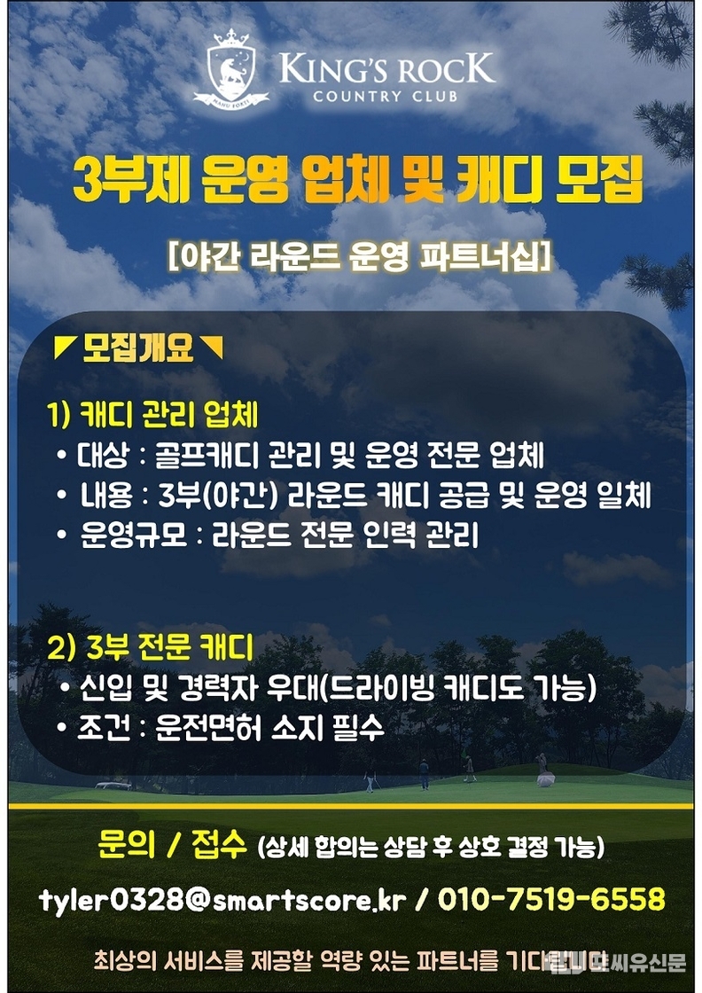[3부제 운영 업체] 킹즈락컨트리클럽 3부제 운영업체 및 캐디 모집