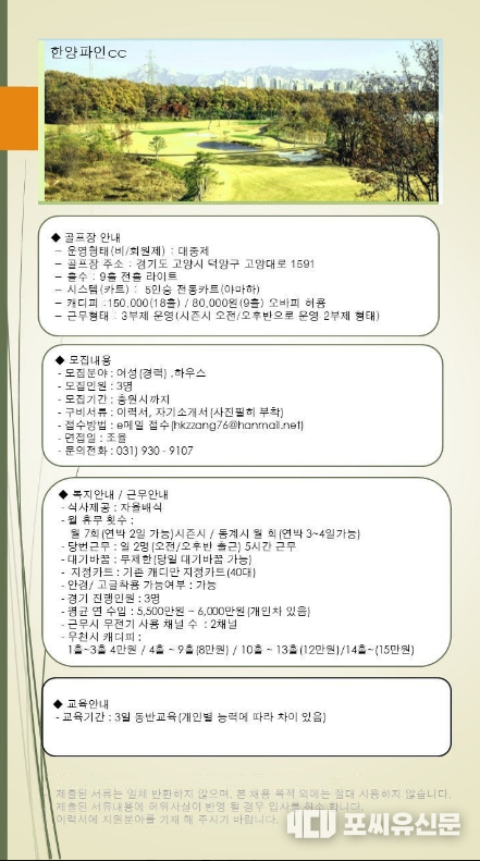 [캐디구인] 한양 파인 CC