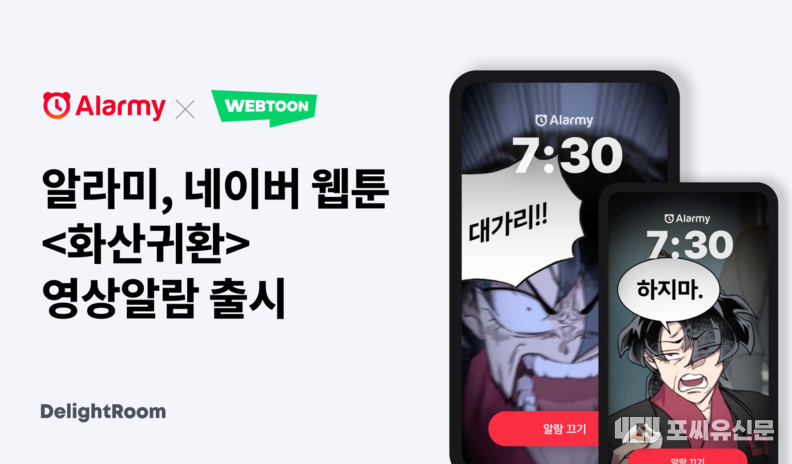 [포씨유신문=차예준 기자] 글로벌 모닝 웰니스 앱 알라미를 운영하는 딜라이트룸은 네이버웹툰 인기 무협 웹툰 ‘화산귀환’과의 컬래버레이션 영상 알람을 공개했다.
